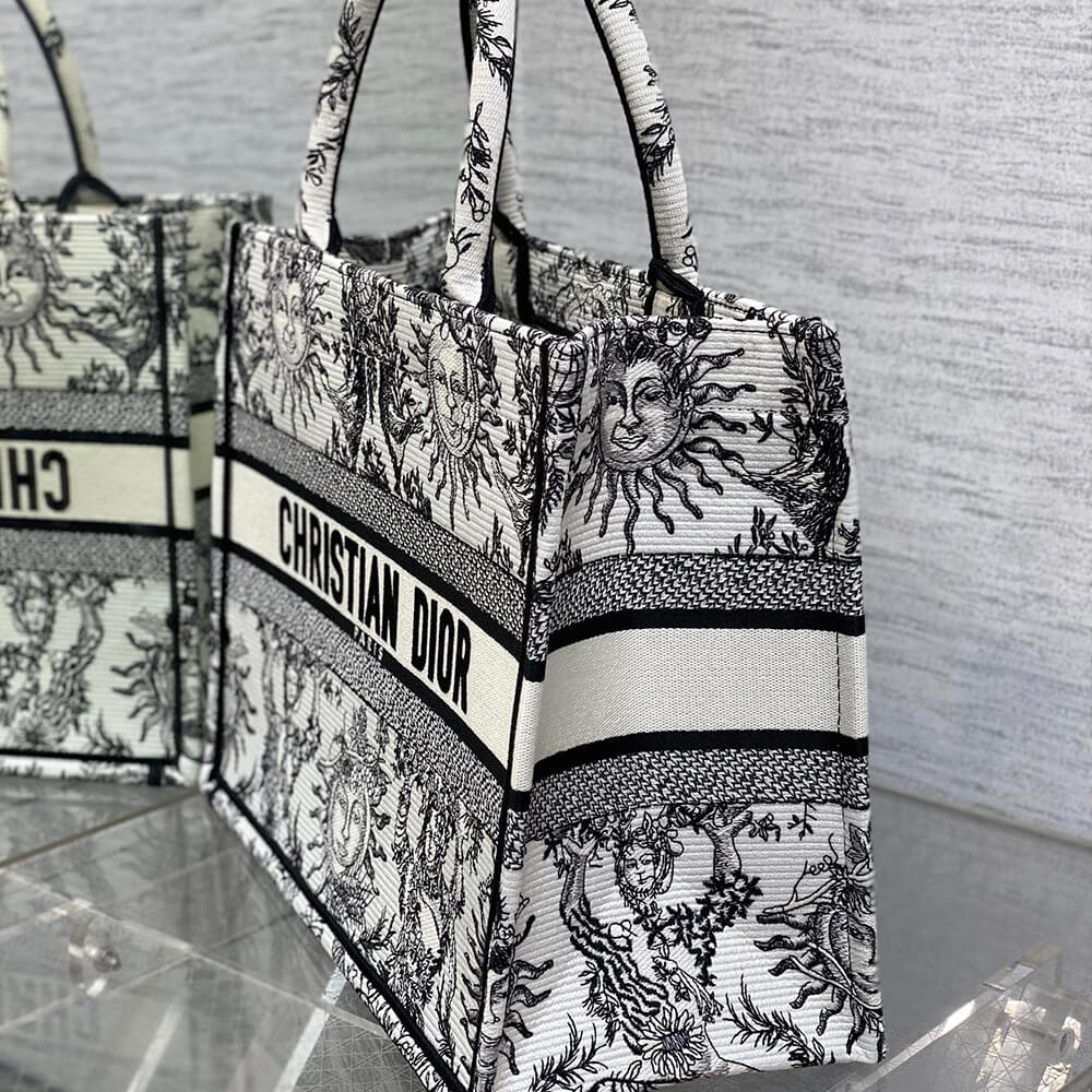 White and Black Toile de Jouy Soleil Embroidery (36 x 27.5 x 16.5 cm)