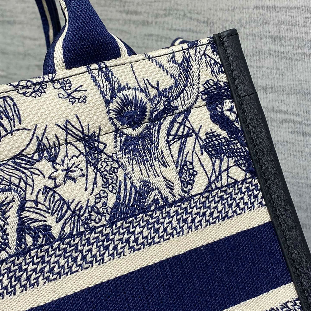 White and Navy Blue Toile de Jouy Sauvage Embroidery with Navy Blue Calfskin