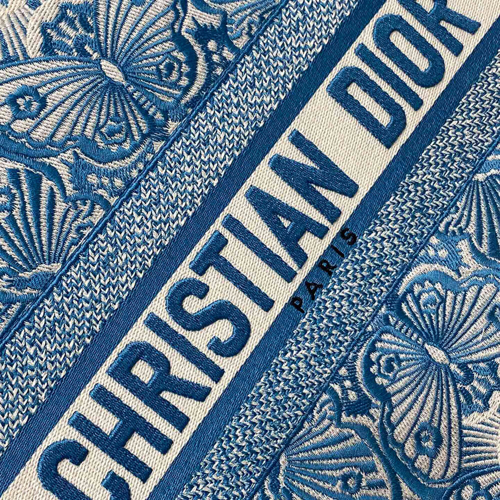 Raffia with Blue Toile de Jouy Papillon Embroidery (36 x 27.5 x 16.5 cm)